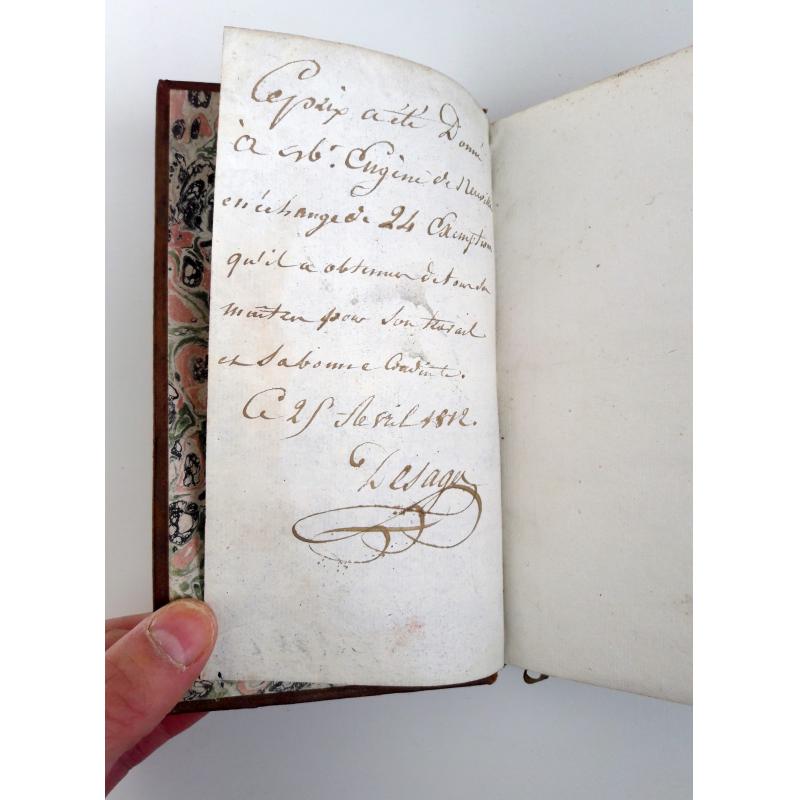 page de garde manuscrite : livre donné en échange de 24 exemptions obtenues pour son travail et sa bonne conduite