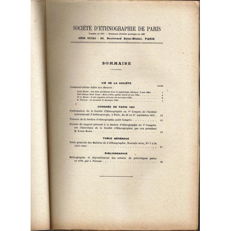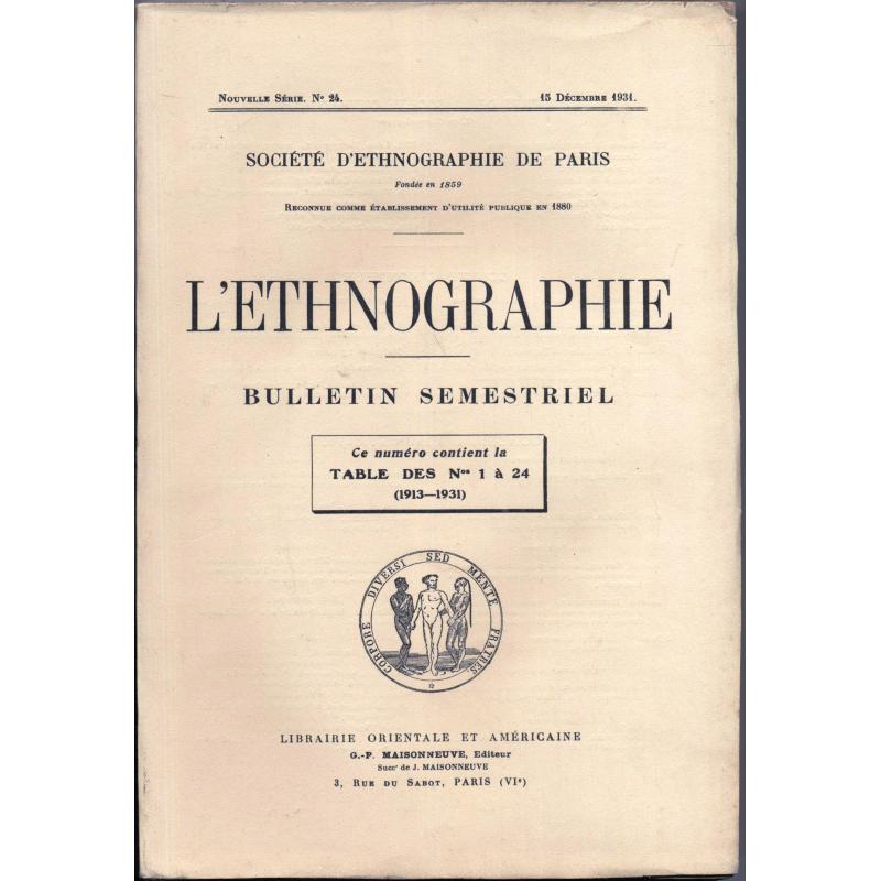 Bulletin semestriel avec table des n° 1 à 24 (1913-1931)