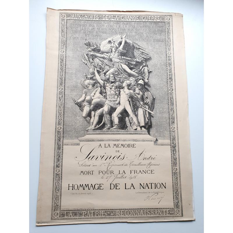 - diplôme de MPF du 1er RTA de 1918